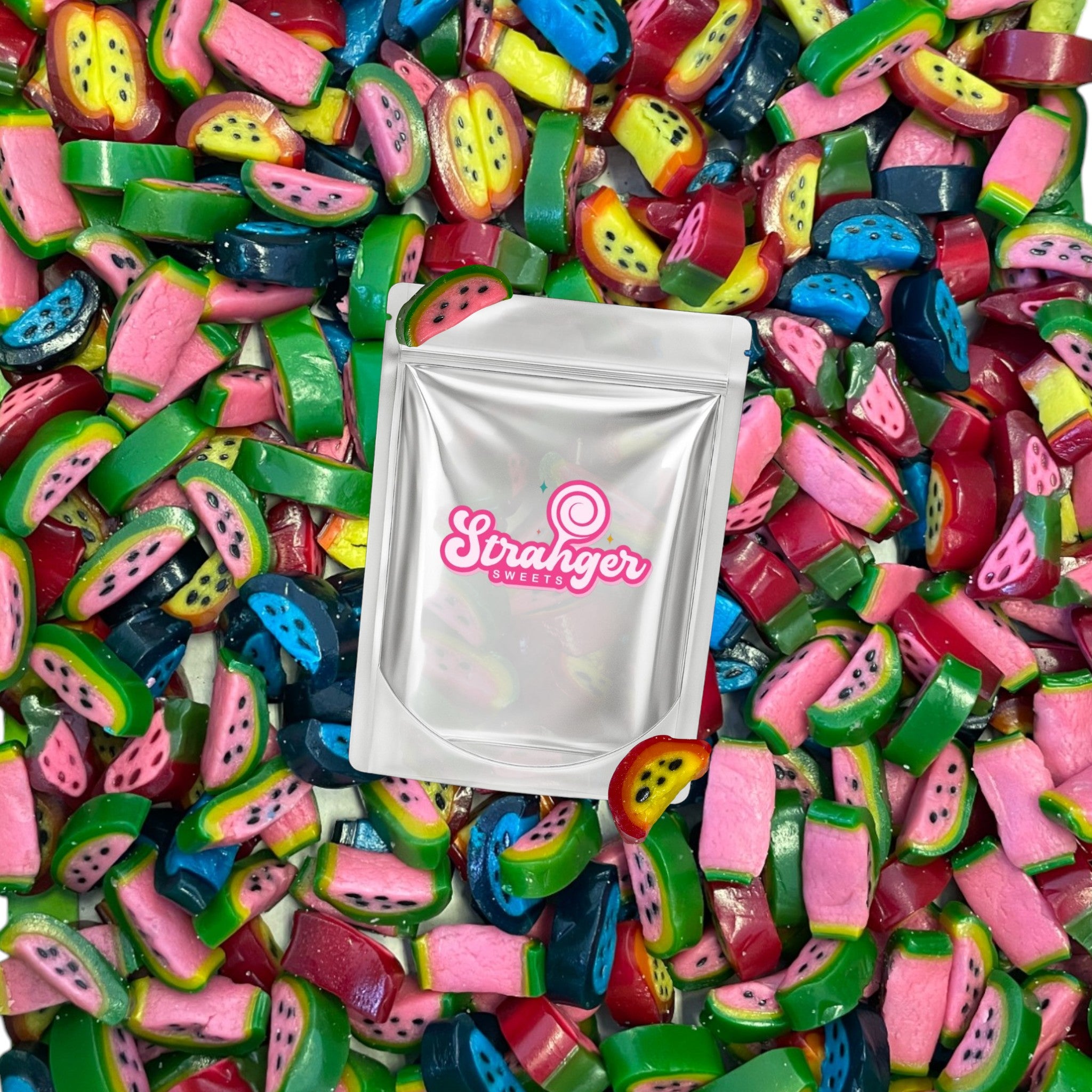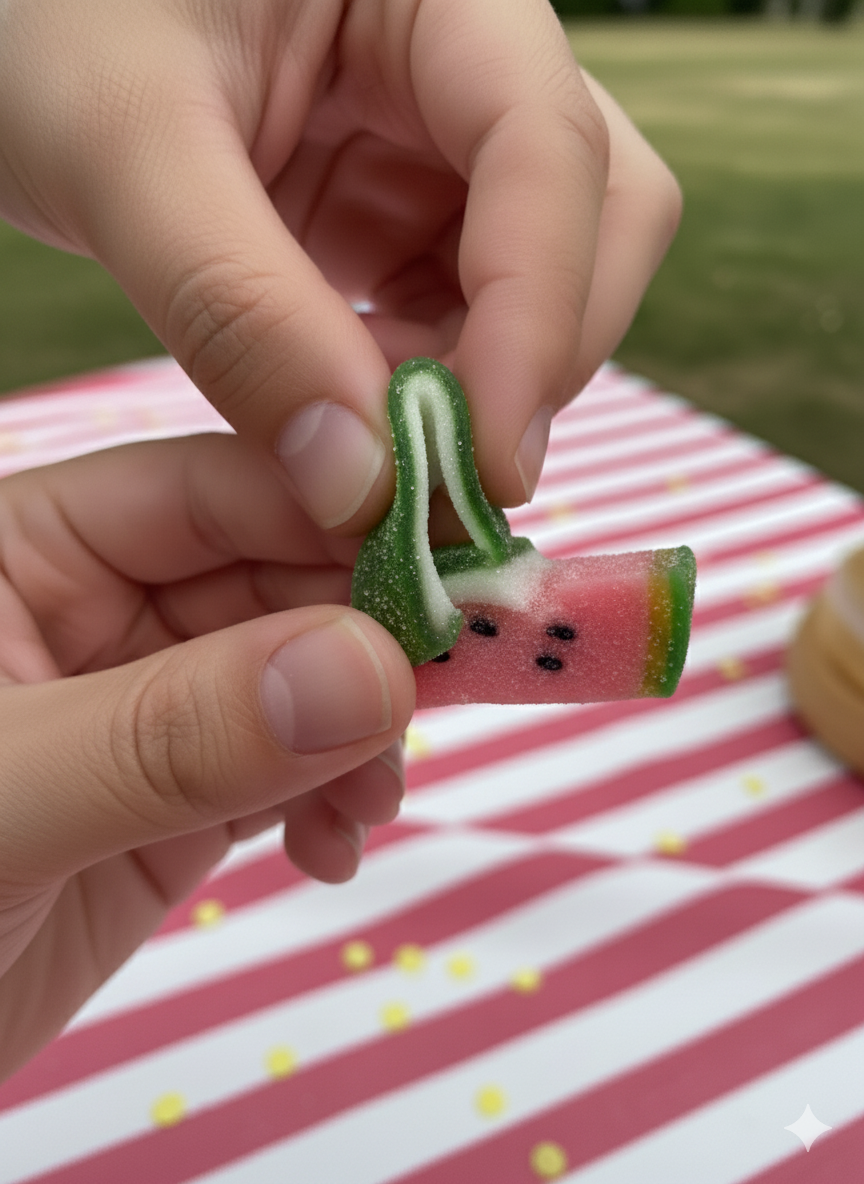 Queste speciali caramelle gommose frutta sbucciabili replicano perfettamente le fettine di frutta vera: una "buccia" gommosa esterna da rimuovere e un cuore morbido interno da gustare. Ogni fettina è un'esperienza tattile e di gusto che trasforma lo snack in un gioco divertente. Dal sapore fresco dell'anguria all'esotico frutto della passione, passando per il dolce lampone e la classica fragola.